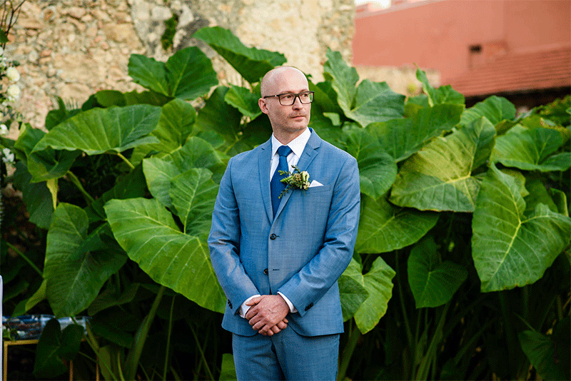 Upon arriving at the wedding location, the bride and groom proceeded to have their First Look. In one of the corridors of the hacienda, Carsten was anxiously waiting for his future wife and could not hold back his tears of happiness when he saw her arrive looking spectacular.